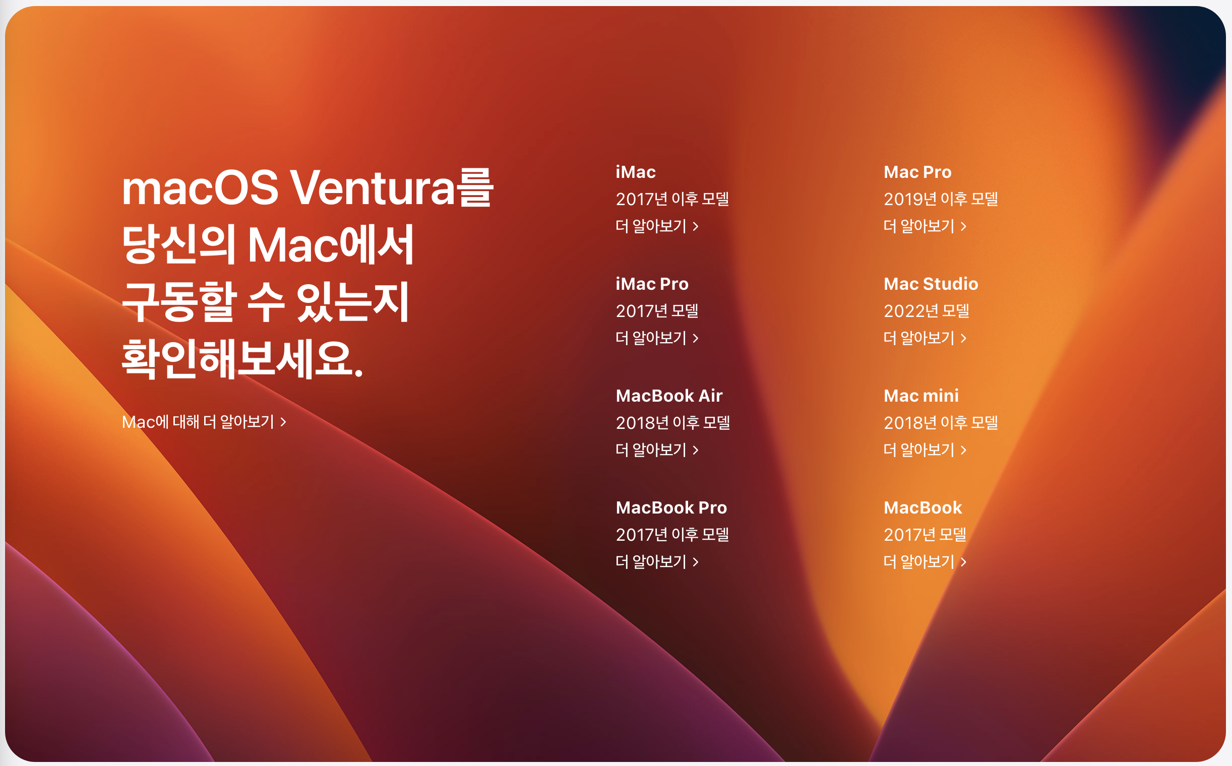 Apple 에서 25일 PC용 맥OS 벤투라(Ventura, 버전 13.0) 정식 버전이 공개되었다.