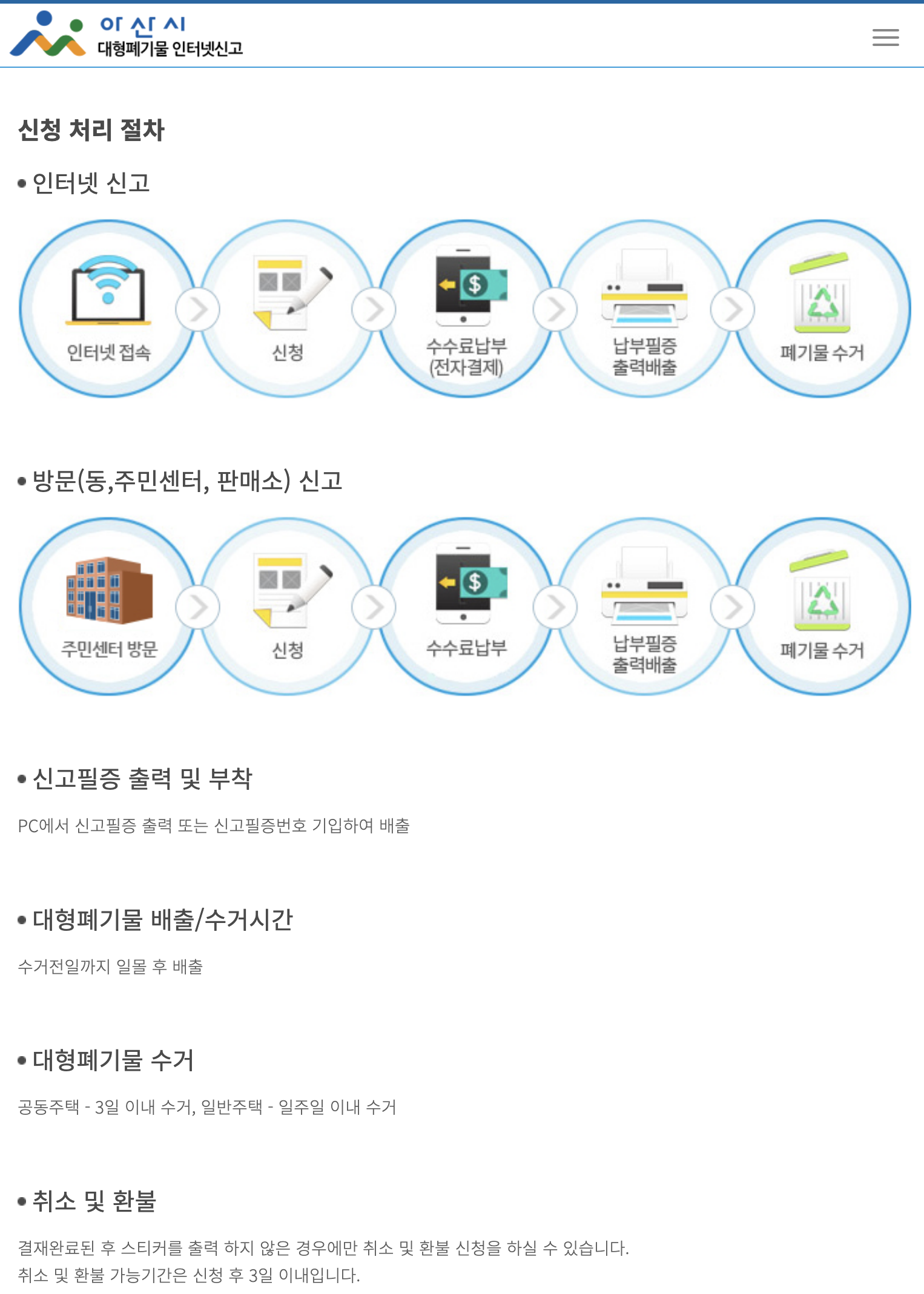 홈페이지 (www.asan.go.kr)를 통해서 배출 신고 및 납부필증 구입도 가능하다.