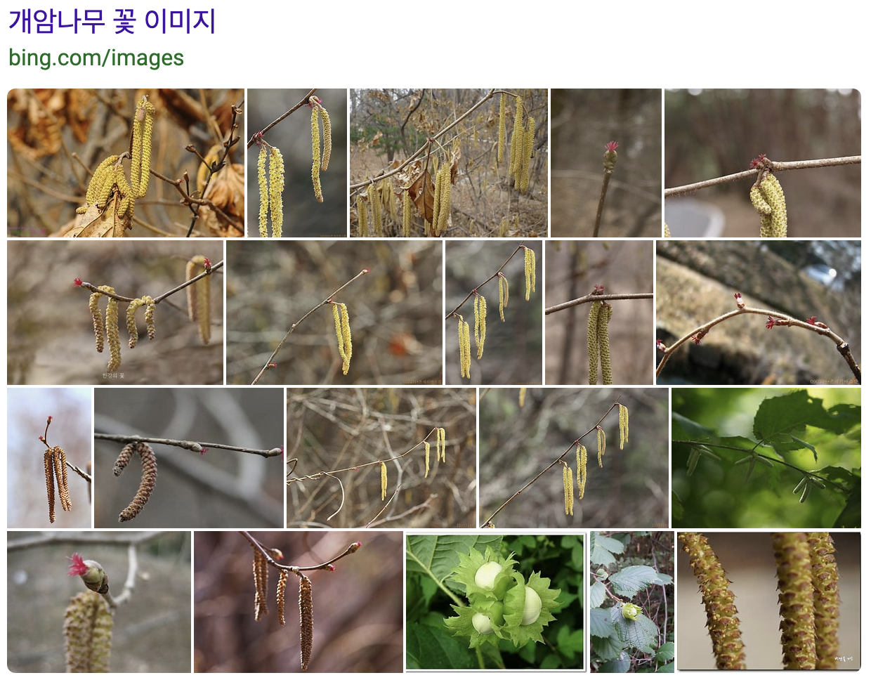 꽃도감에서 개암나무인 걸 알았다. 얘는 사진을 찍지 못 해서 검색 이미지를 가져옴.