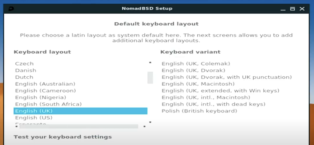 Language/Locale 설정하고, Keyboard는 한글 키보드가 선택지에 없고 user-defined를 선택하면 한글 키보드 선택이 가능합니다.