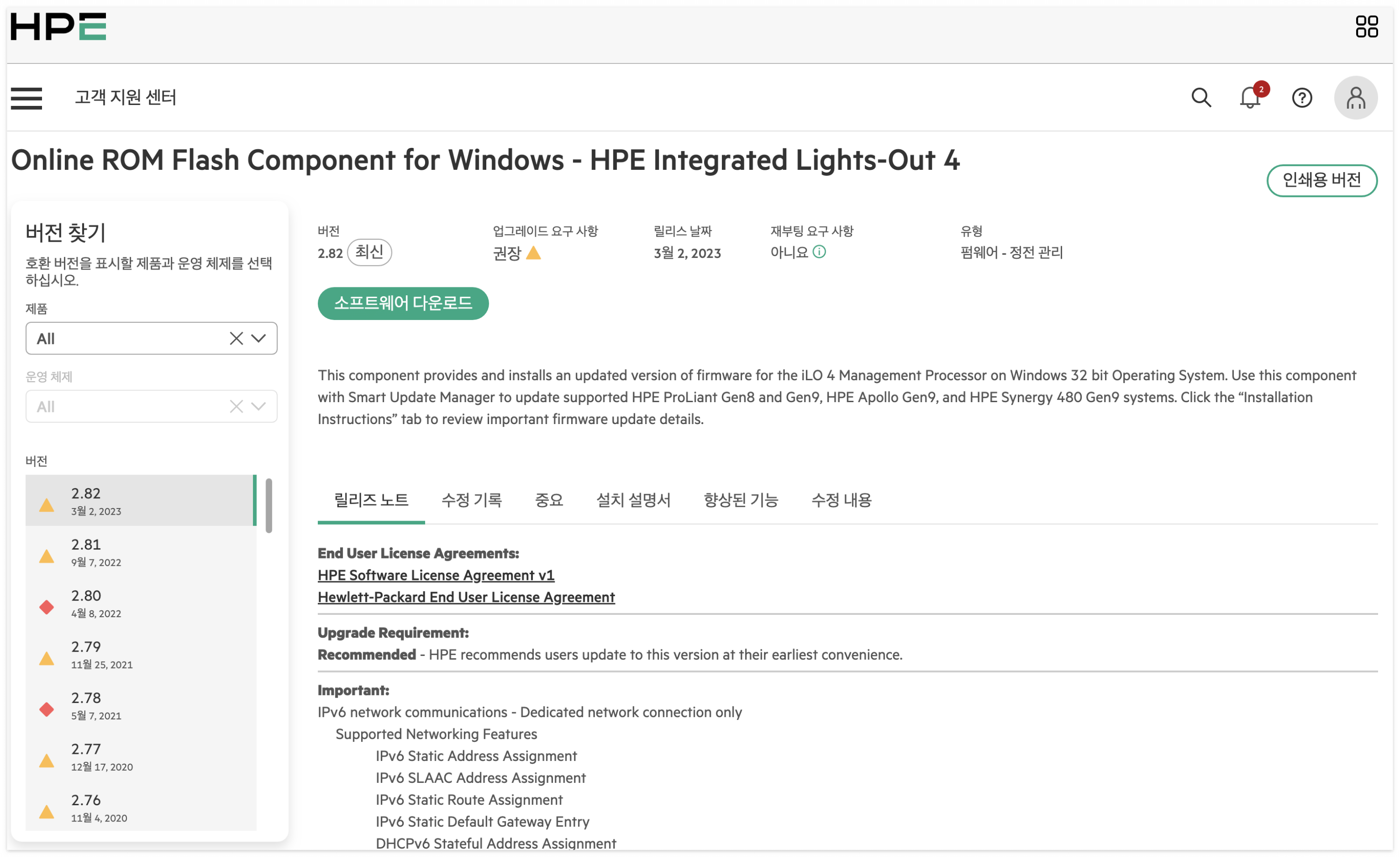 우선 iLO4 최신 펌웨어 다운로드는 여기!!
