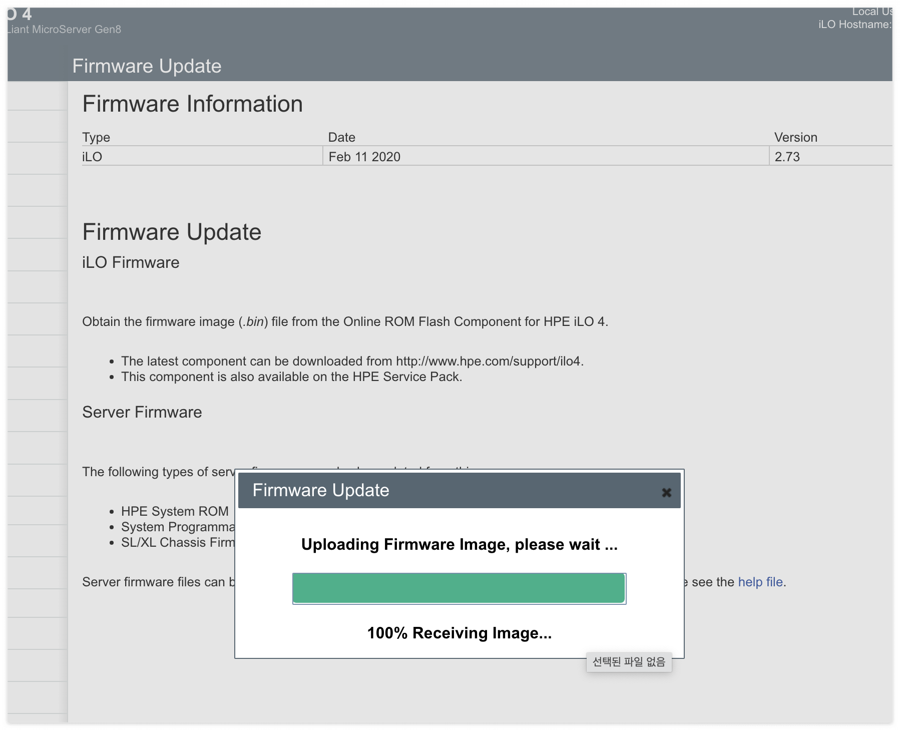 이후 iLO4 - Administration - Firmware - 파일 선택 에 해당 bin 파일 등록하고 Upload 하시면 됩니다.