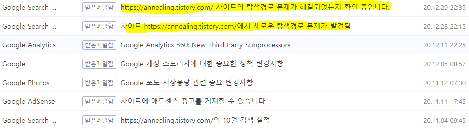 스킨을 지난 주에 바꿨고, 카테고리 목록을 재정비하고 났더니 메일이 오고 있는데요.