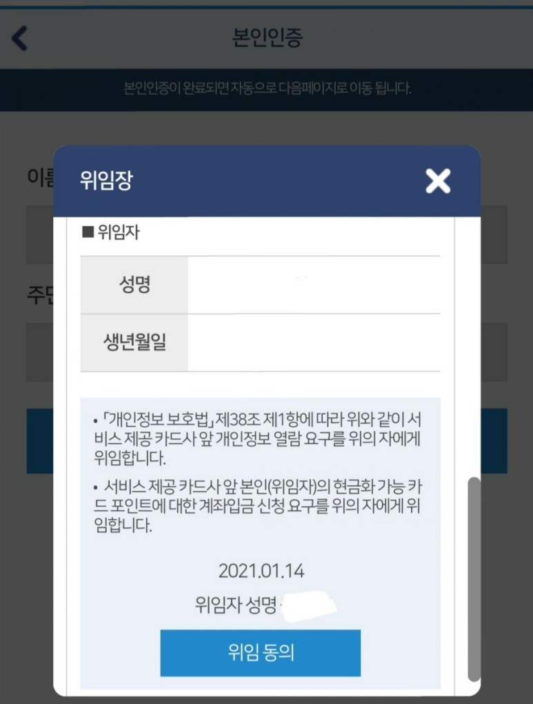 그리고, 위임장 동의와 본인인증을 합니다.