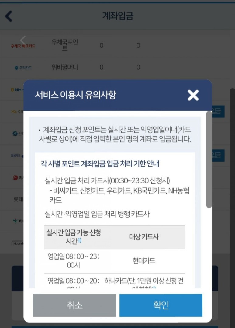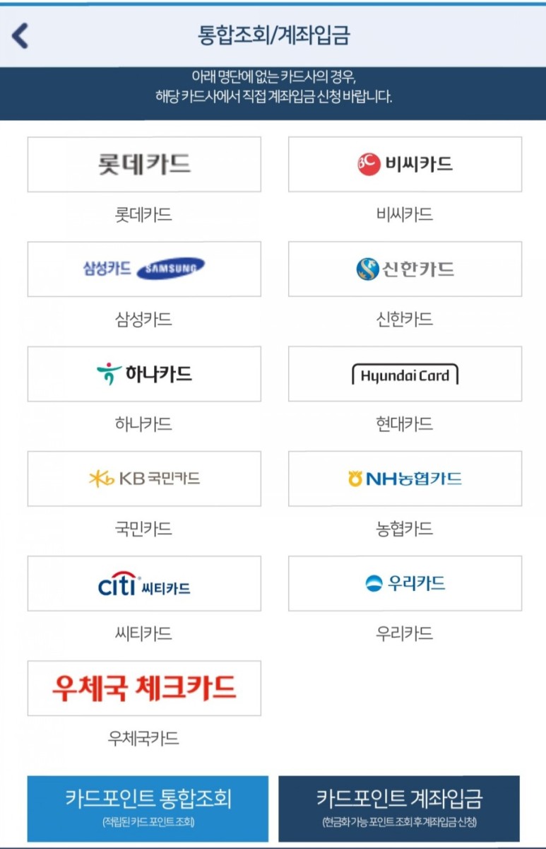 저는 2개 카드사에서 포인트 계좌입금 신청을 했습니다.