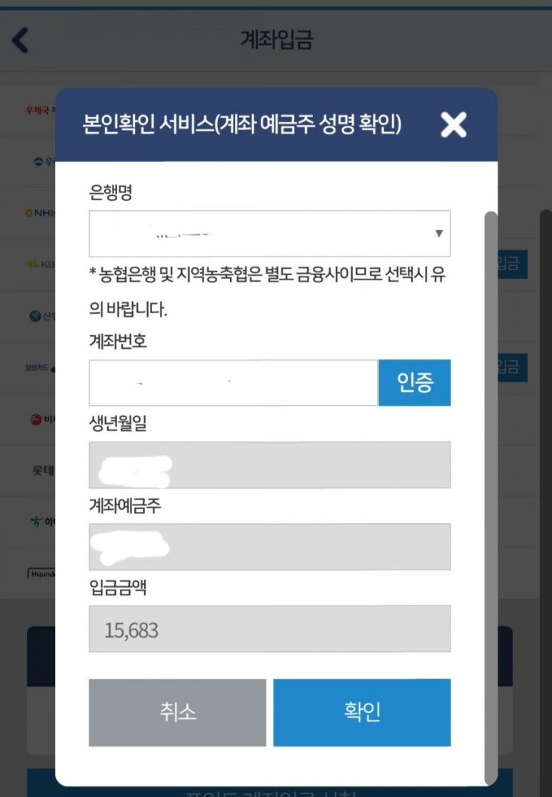 본인인증은 모바일에서 바로 문자인증을 했습니다.