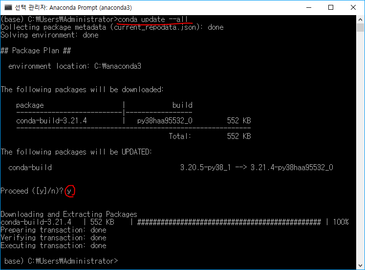 2. 아나콘다 파이썬 전체 패키지(아나콘다 프레임워크) 업데이트